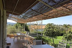 - Terrasse oder überdachter Gartensitzplatz mit Gartenmöbeln